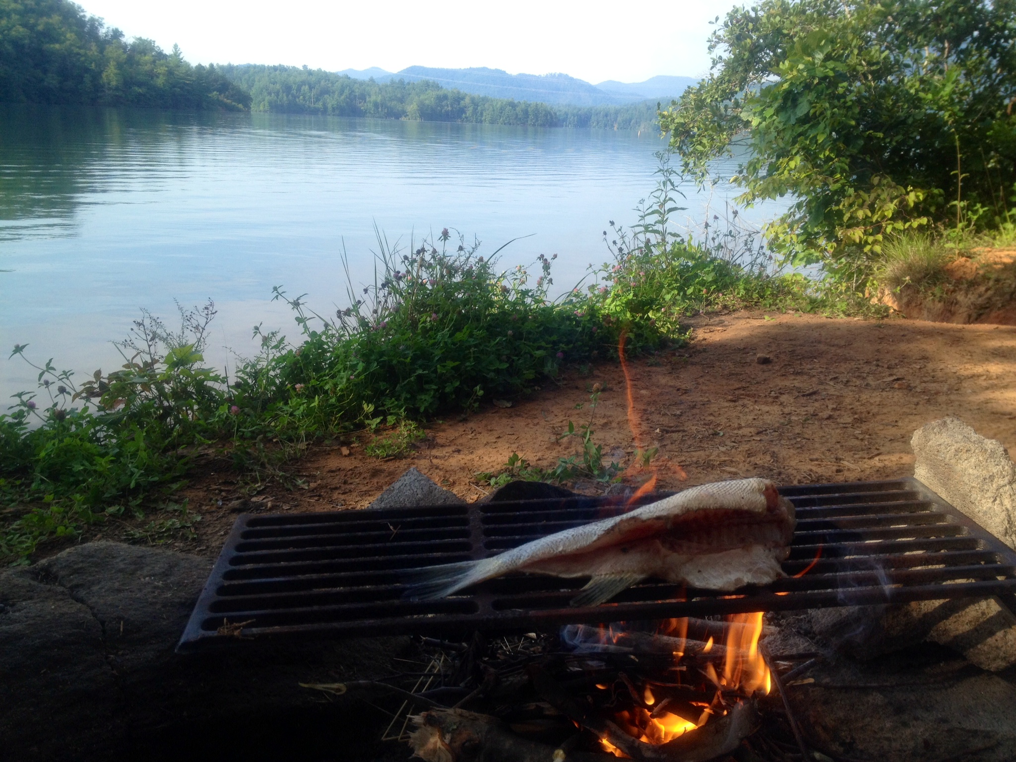 The second night we camped alongside Santeetlah Lake, which so far has been the ideal spot besides the fact that we were next to Woot Boys all night (seriously, don’t go camping and go ‘woot’ all night like a couple of giggly school girls). Locke has really gotten the hang of not drowning and has leveled up to paddling aimlessly with his eyes closed while Ronan runs around snapping at butterflies. It doesn’t get much better than swimming in a warm lake and fishing for bass; just don’t swallow because, and I quote: ‘giardia is real’.