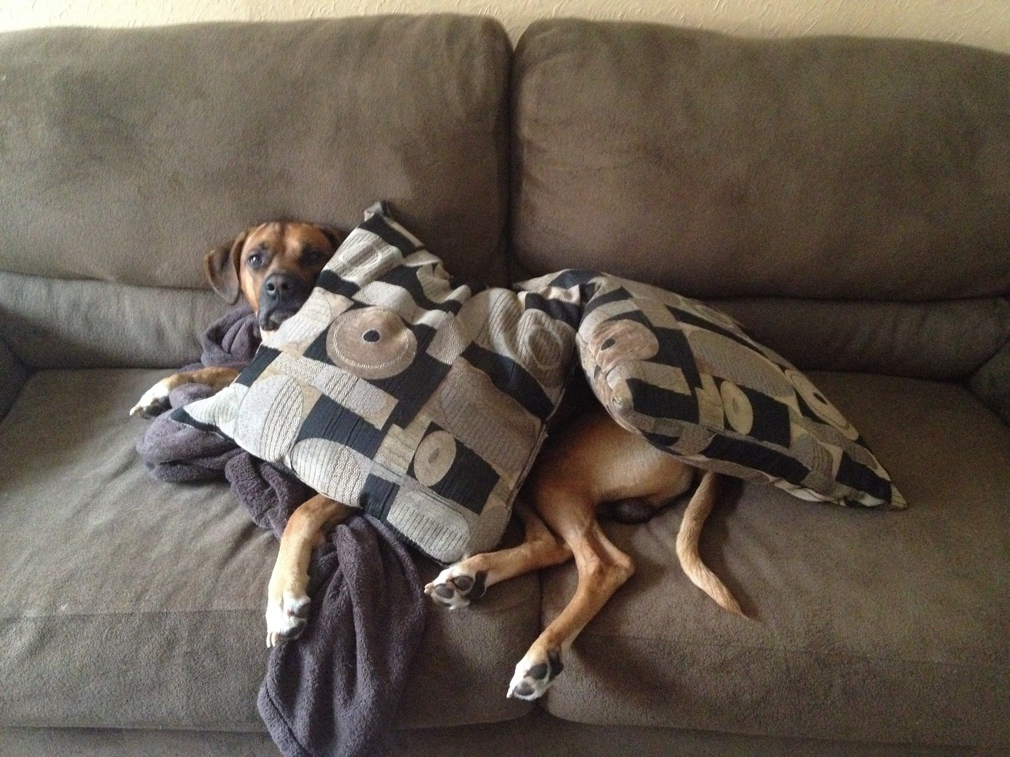 These are our pups, Locke (the one on top) and Ronan (the big nosed goof). From the very first moment that Ronan peed on Locke, and I say first because there have been many, these two have grown to love each other like brothers. It’s exciting to share our adventure with these boys as they slobber happily across the US.